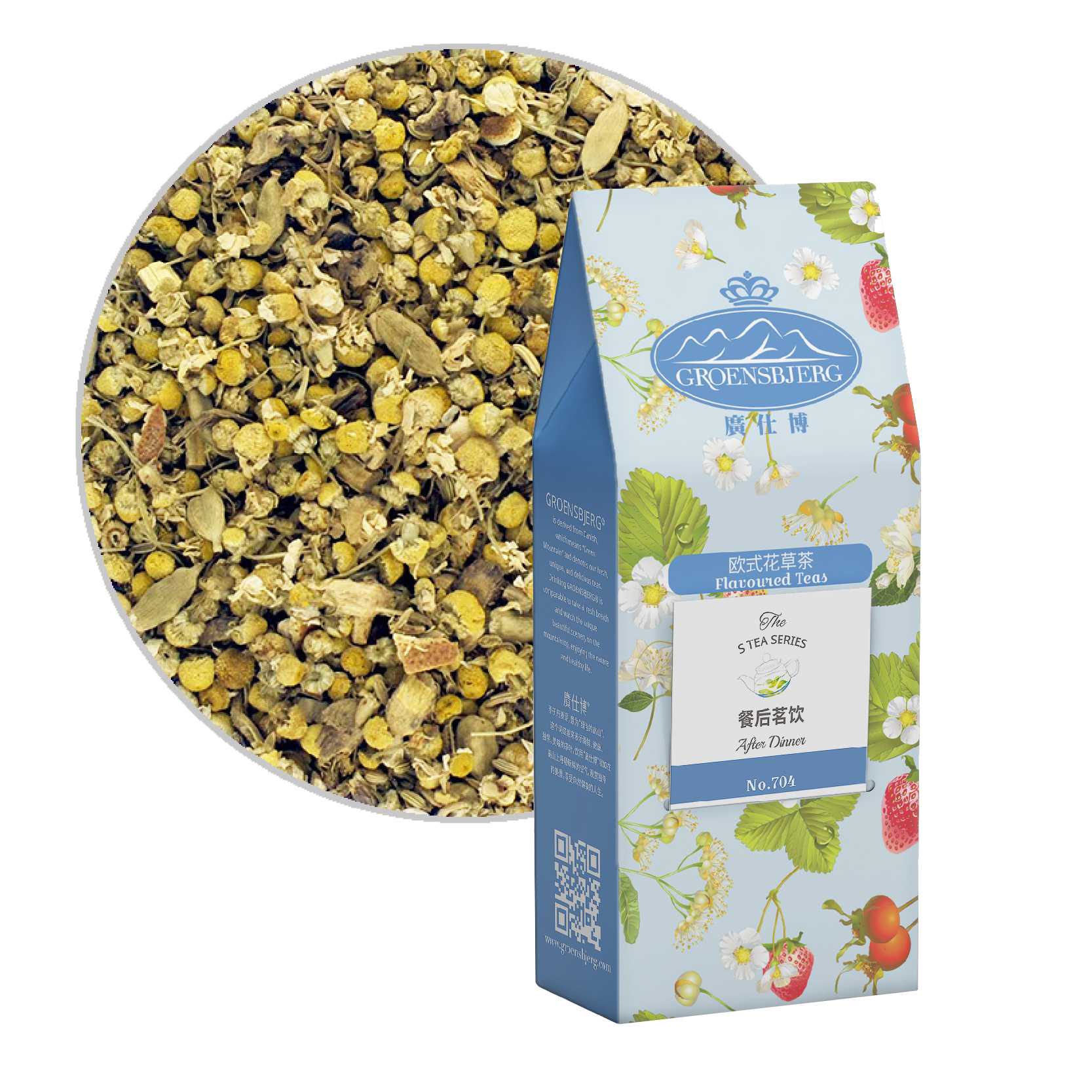 Herbal infusion with licorice, fennel, chamomile, cardamom, orange peel, ginger and chicory.