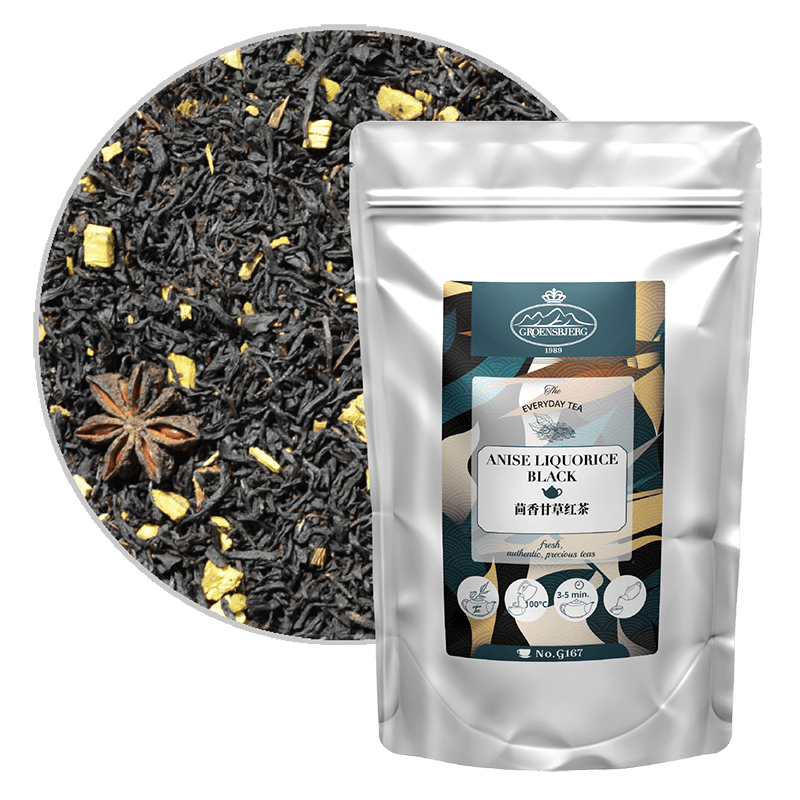 Flavored black tea blend with licorice root, star anise, and a spicy-fine liquorice aroma.