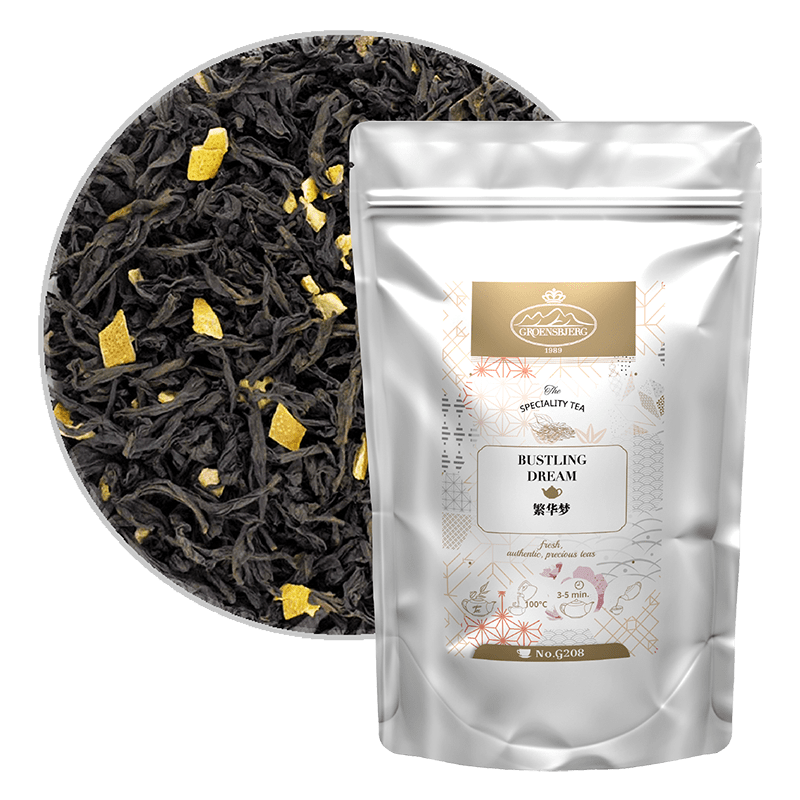 An invigorating tea dream. Dahongpao oolong with fresh lemon peel and hibiscus.