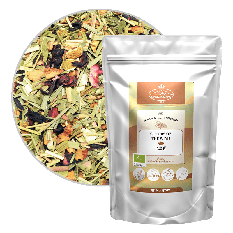 Herbal blend with lemon grass, apple pieces, hibiscus, orange peels, vervain leaves and delicate vanilla-lime flavor.