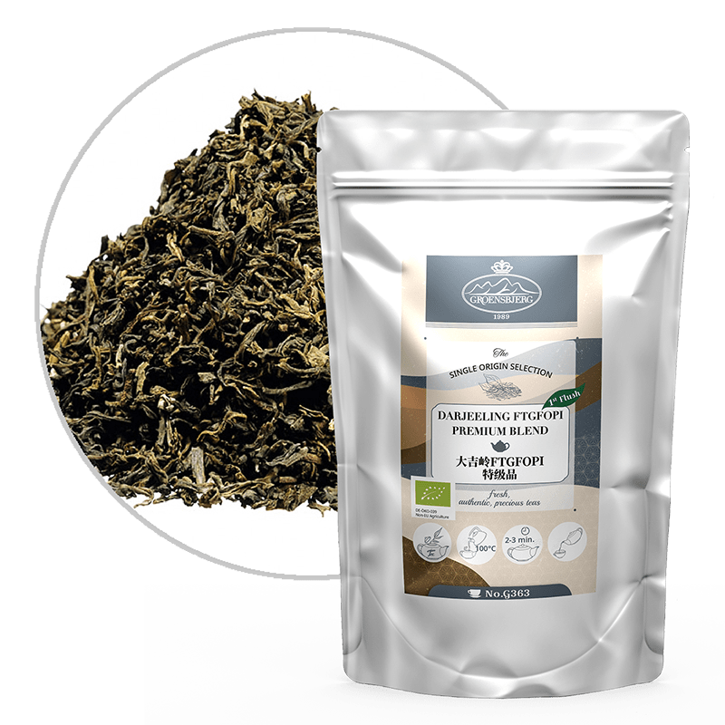 A Darjeeling Premium Blend from the first flush harvest with typical light cup and fine Darjeeling aroma.