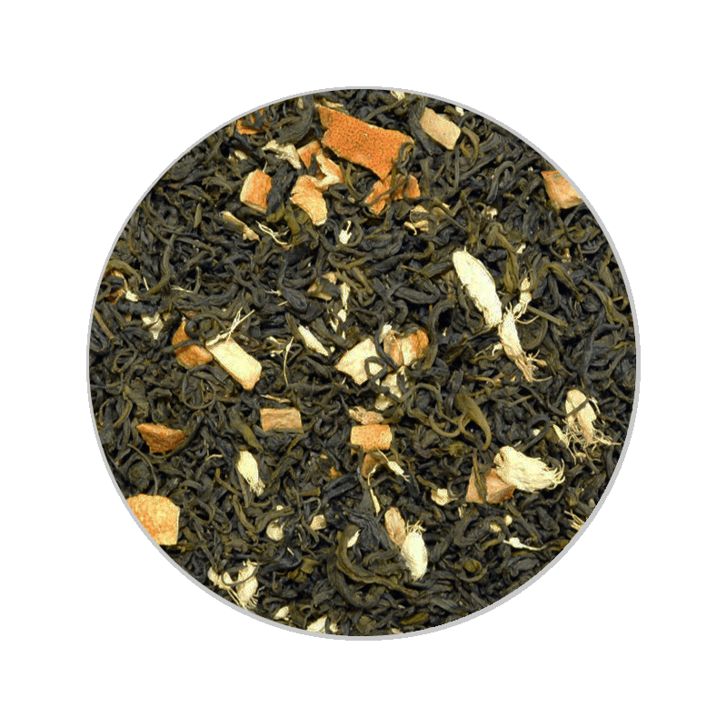 Refreshing green tea blend with spicy ginger and lemon peels.