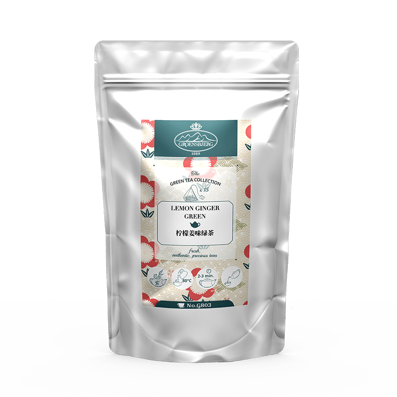 Refreshing green tea blend with spicy ginger and lemon peels.