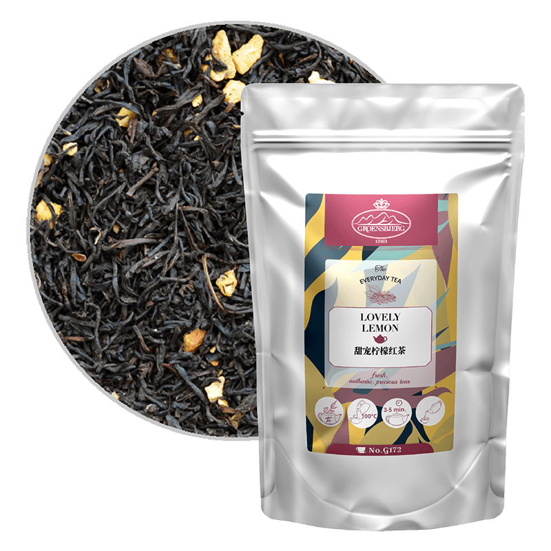 Black tea with lemon peels, slightly sugared apricots and refreshing lemon taste.