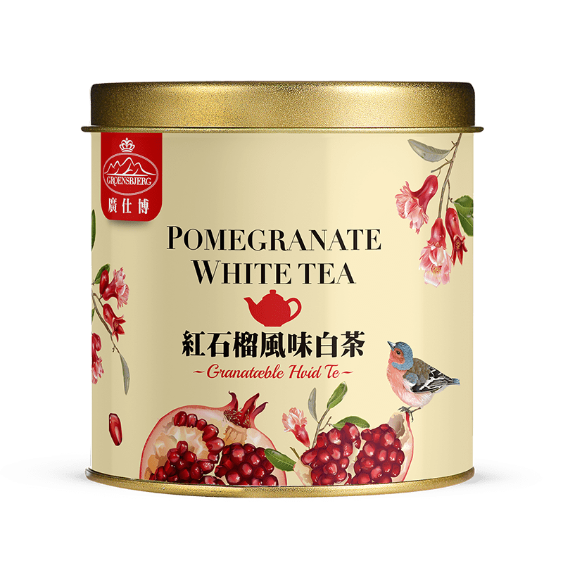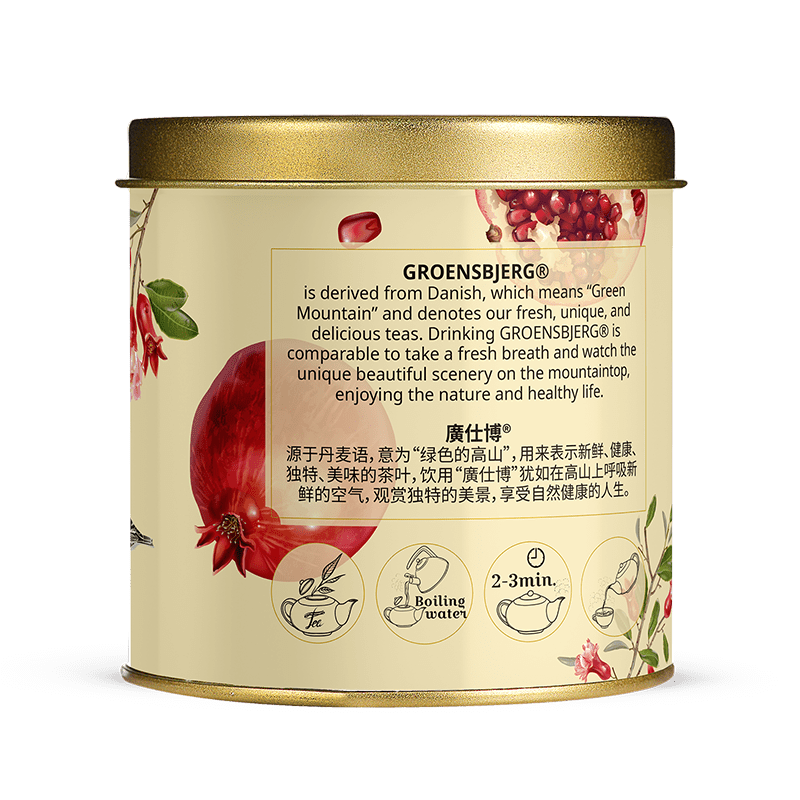 Red pomegranate flavored white tea with cranberry and rose petals.