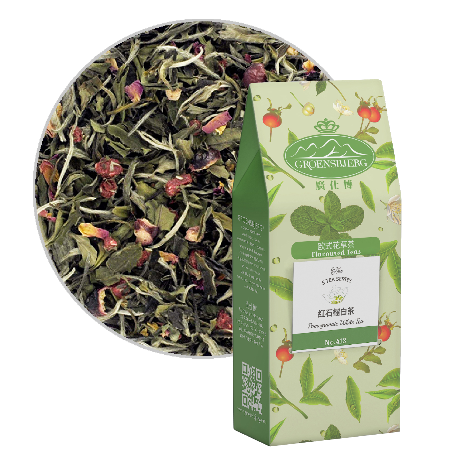 Pomegranate White Tea 38g Pouch Box with Loose Tea