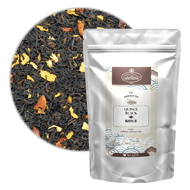 Black tea with apple pieces, natural flavorings and sunflower petals. Intense quince flavor is a delicious companion for the mild black tea.