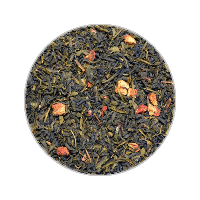 Tender red fruits like strawberry and raspberry play the starring role here. China Jade Wings green tea with natural flavorings, strawberry pieces, raspberry pieces.