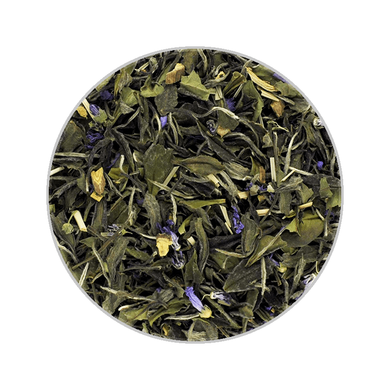 Soft white tea with refreshing lemongrass and aromatic jasmine blossoms.