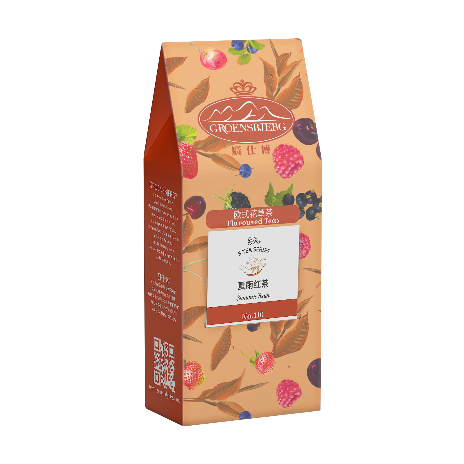 This subtropical blend evokes a summer holiday feel. Black tea with peach, pineapple, osmanthus and cornflower. Rich tropical fruit flavor.